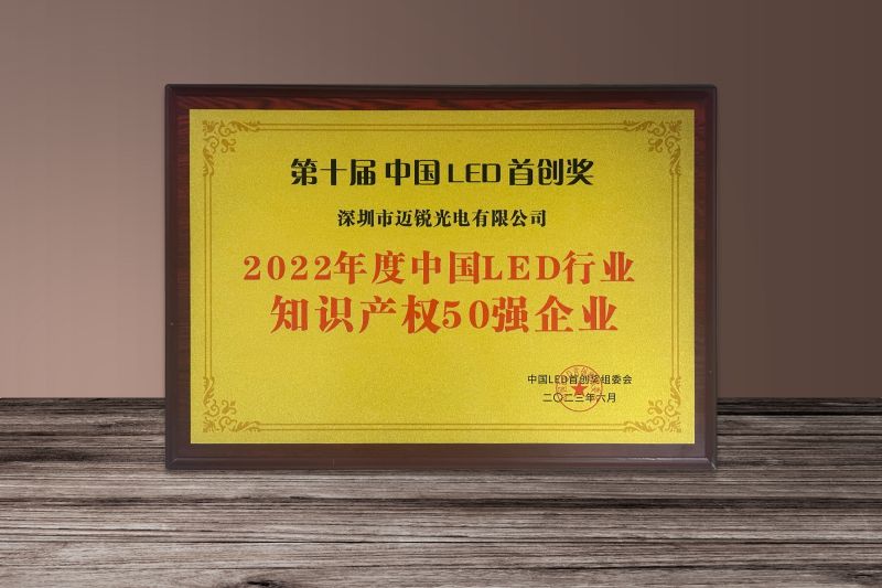 6月9日,以“開啟中國LED高質(zhì)量發(fā)展黃金新十年”為主題的第十屆中國LED首創(chuàng)獎頒獎典禮在廣州朗豪酒店舉行。頒獎典禮上,深圳市邁銳光電有限公司入圍2022年度中國LED行業(yè)知識產(chǎn)權50強榜單。